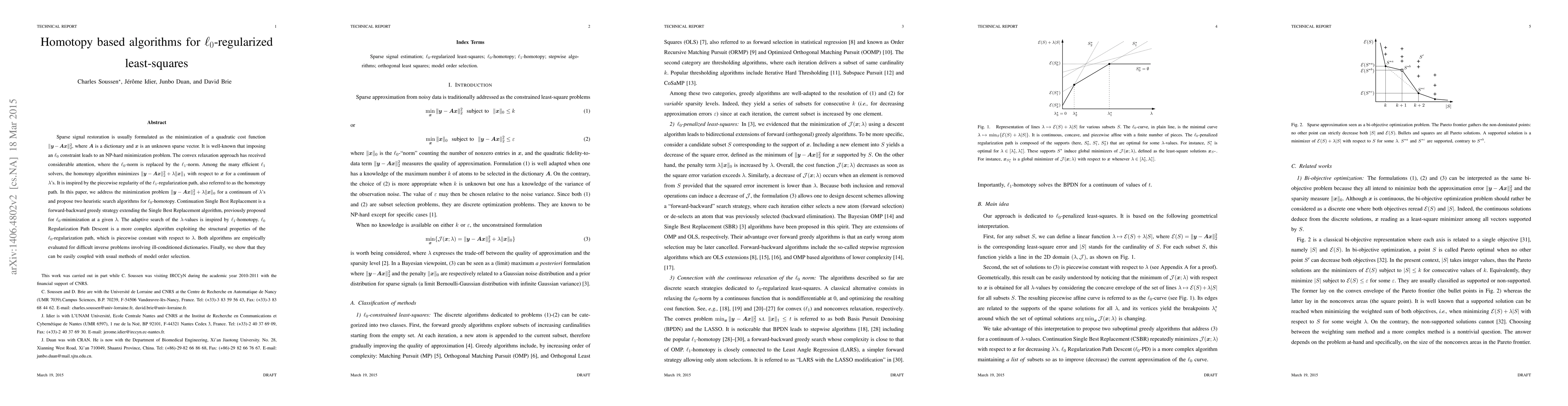 Two heuristic search algorithms for $ extit{homotopy}$ based sparse signal restoration using $ extit{ΰ}_0$-regularization are proposed, offering an efficient solution to the NP-hard minimization problem by leveraging piecewise regularity and structural properties of the regularization path.