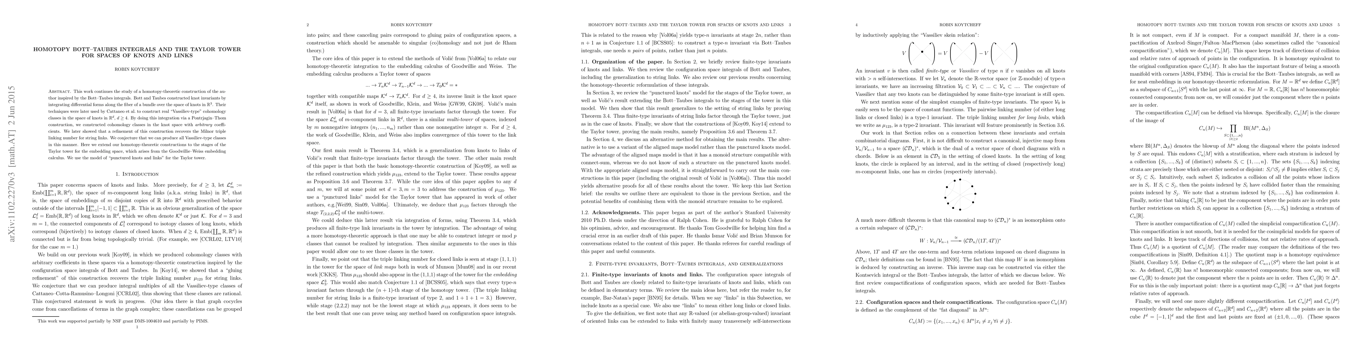 The paper extends homotopy-theoretic constructions inspired by Bott-Taubes integrals to stages of the Taylor tower for the knot space, using a model of 'punctured knots and links'.
