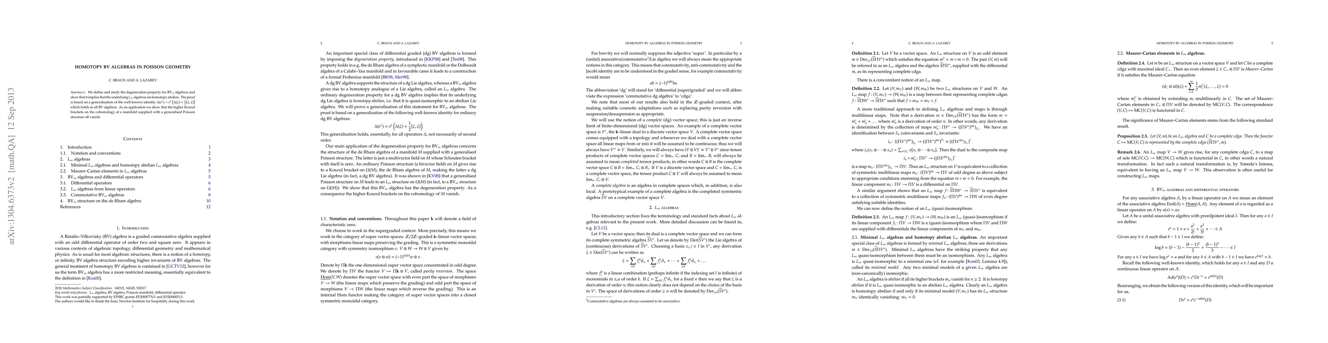 We define and study the degeneration property for BV-infinity algebras and show that it implies that the underlying L-infinity algebras are homotopy abelian. The proof is based on a generalisation of the well-known identity \Delta(e^x)=e^x(\Delta(x)+[x,x]/2) which holds in all BV algebras. As an application we show that the higher Koszul brackets on the cohomology of a manifold supplied with a generalised Poisson structure all vanish.