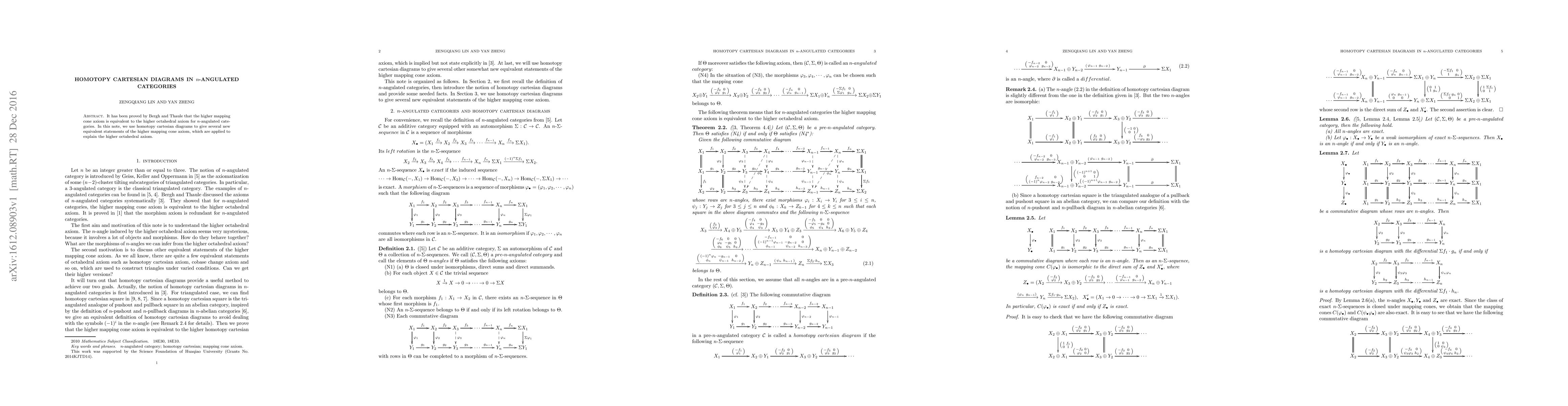 This paper demonstrates that homotopy cartesian diagrams provide new equivalent formulations of the higher mapping cone axiom in n-angulated categories, and these formulations help explain the higher octahedral axiom. The research builds on prior work by Bergh and Thaule linking the higher mapping cone and octahedral axioms.