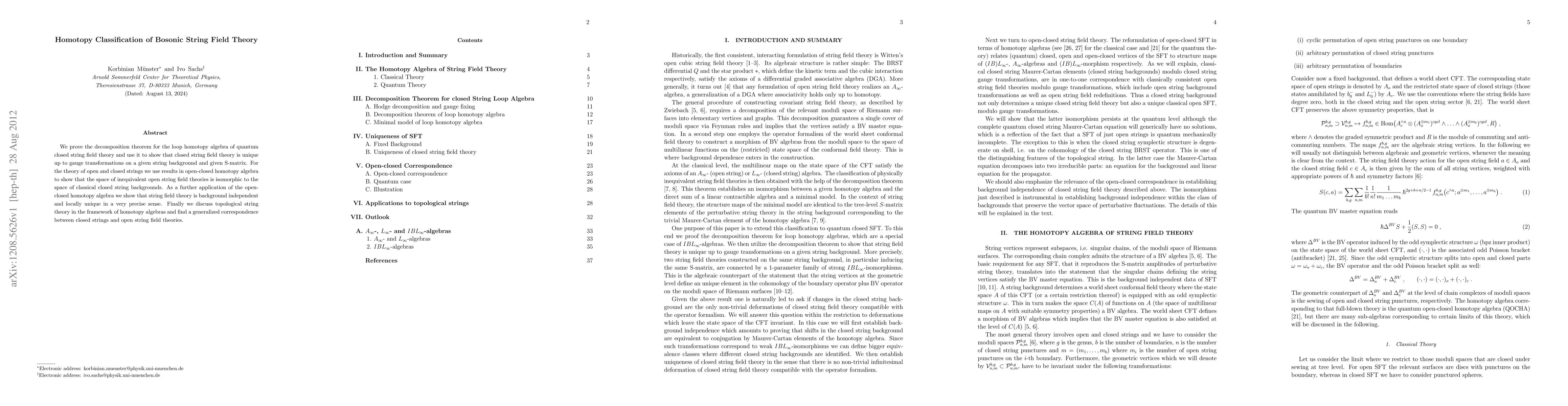 This paper establishes the decomposition theorem for the loop homotopy algebra in bosonic string field theory, proving its uniqueness up to gauge transformations. It also demonstrates that the space of open string field theories is isomorphic to classical closed string backgrounds, showcasing background independence and local uniqueness. Additionally, it explores topological string theory within homotopy algebra frameworks.