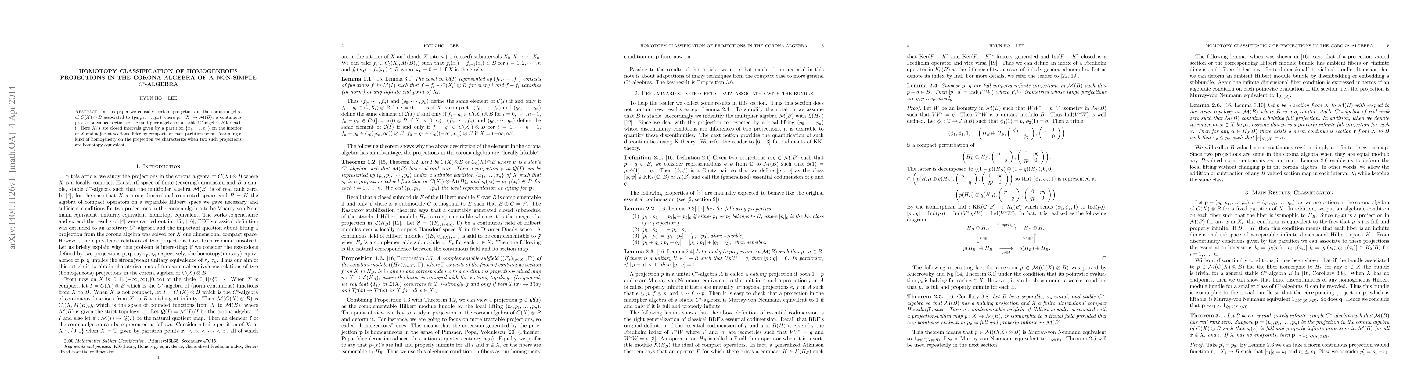 In this paper we consider certain proejctions in the corona algebra of $C(X)\otimes B$ associated to $(p_0, p_1, \dots, p_n)$ where $p_i: X_i \to \mt_s$ a continuous projection valued section to the multiplier algebra of a stable $C\sp*$-algebra $B$ for each i. Here $X_i$'s are closed intervals given by a partition $\{x_1, \dots, x_n\}$ on the interior of $X$ and adjacent sections differ by compacts at each partition point. Assuming a kind of homogeneity on the projection we characterize when two such projections are homotopy equivalent.