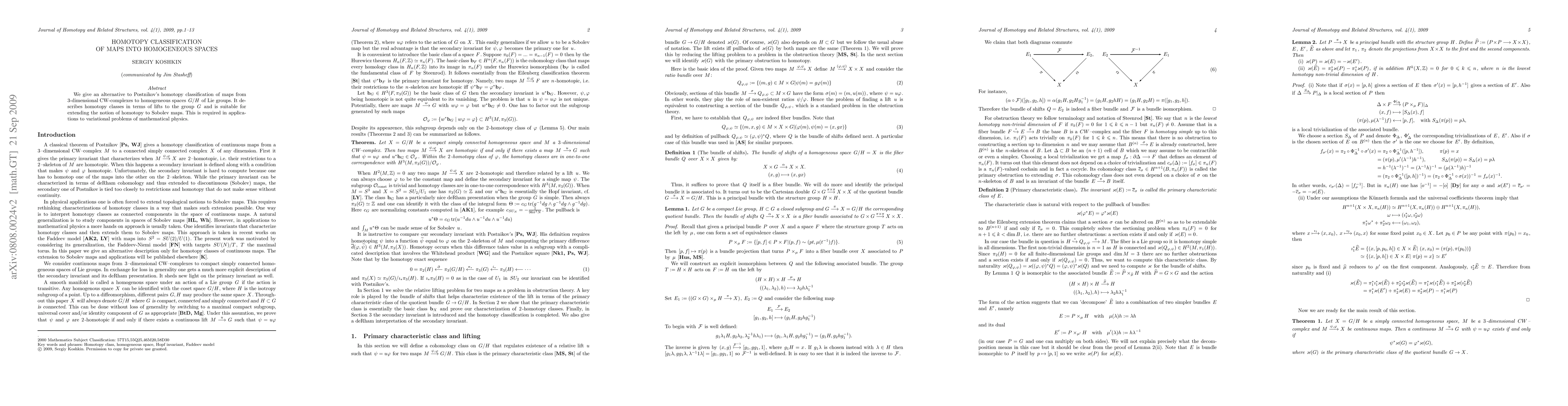 This paper presents an alternative homotopy classification for maps from 3-dimensional CW-complexes to homogeneous spaces, using lifts to Lie group G, extending the method for Sobolev maps relevant to variational problems in mathematical physics.
