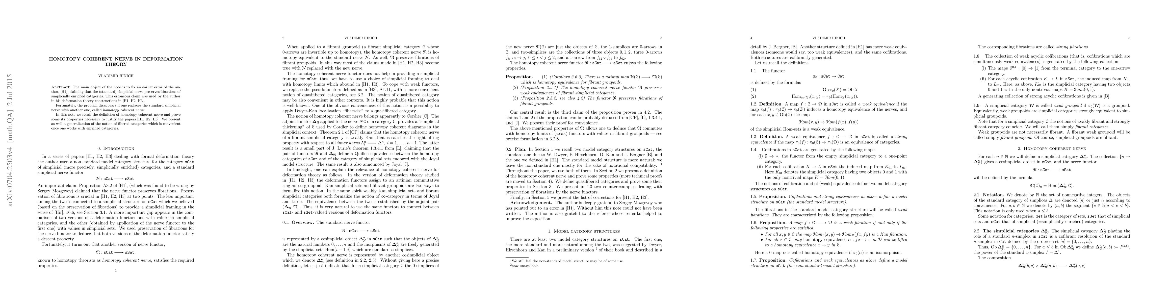 In this note we explain that homotopy coherent simplicial nerve has to used intead of the standard definition in the author's papers on formal deformation theory. A convenient version of the notion of fibered category is presented which is useful once one works with simplicial categories.