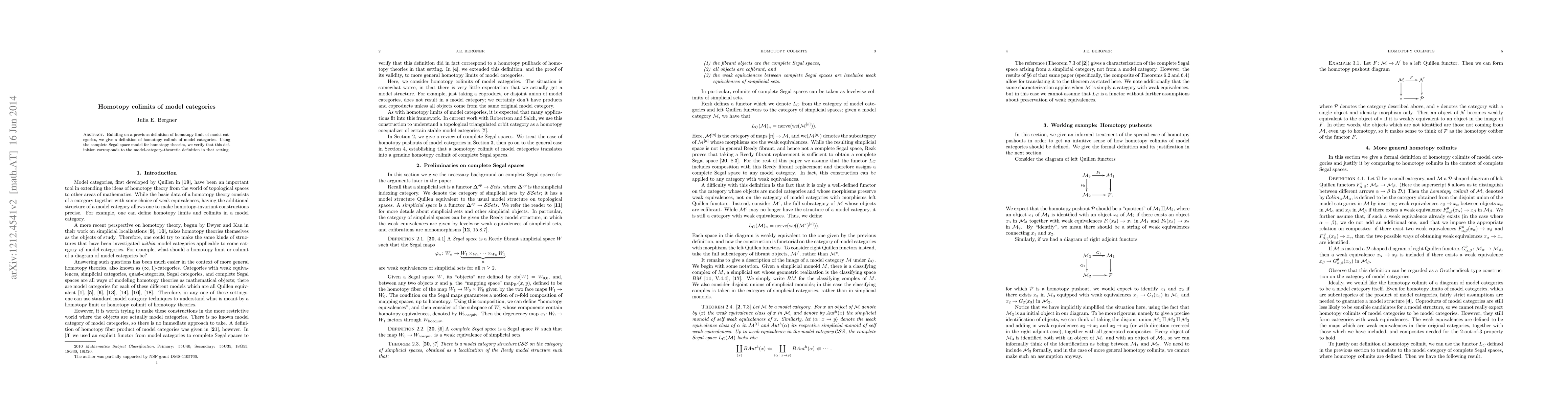 This paper defines homotopy colimits in model categories and verifies their consistency with the complete Segal space model for homotopy theories, building on prior work on homotopy limits. The definition ensures a coherent model-category-theoretic approach.