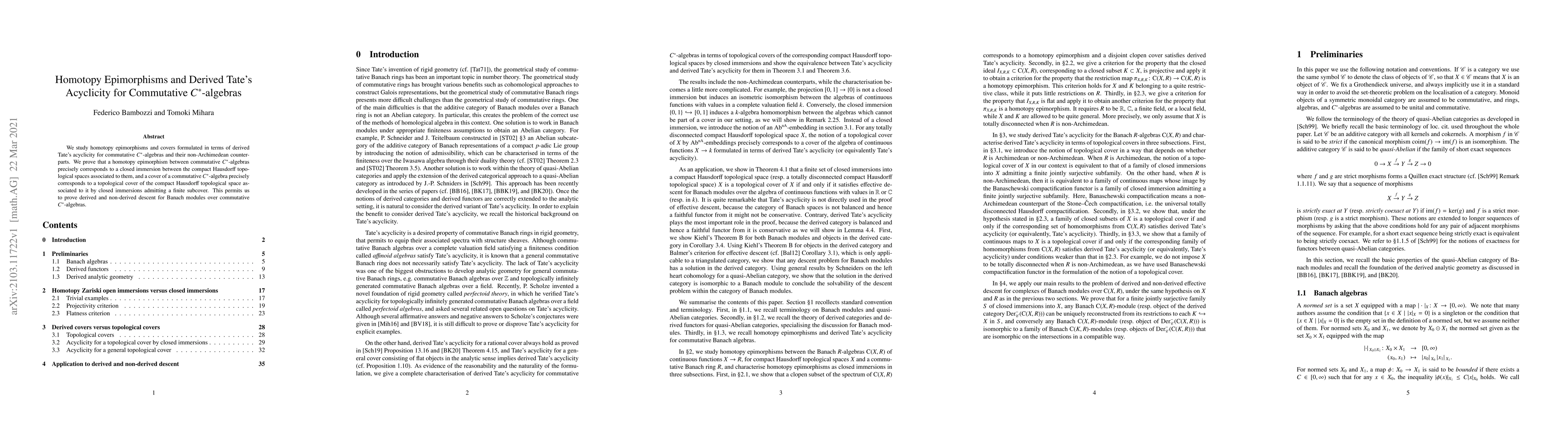 This paper explores homotopy epimorphisms and covers in the context of commutative C*-algebras and their non-Archimedean counterparts, establishing a connection between these algebraic structures and topological spaces. It proves the derived and non-derived descent for Banach modules over these algebras.
