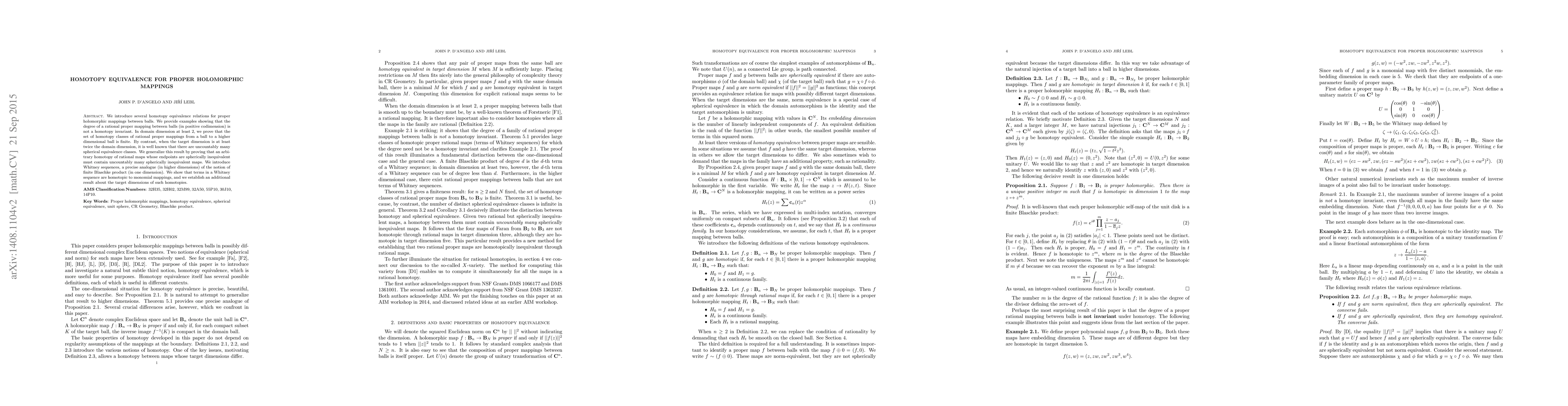 This paper explores homotopy equivalence relations for proper holomorphic mappings between balls, demonstrating that the degree of rational proper mappings is not a homotopy invariant. It proves that in higher dimensions, the set of homotopy classes of such mappings is finite, contrasting with the uncountably many spherical equivalence classes when the target dimension is at least twice the domain dimension.