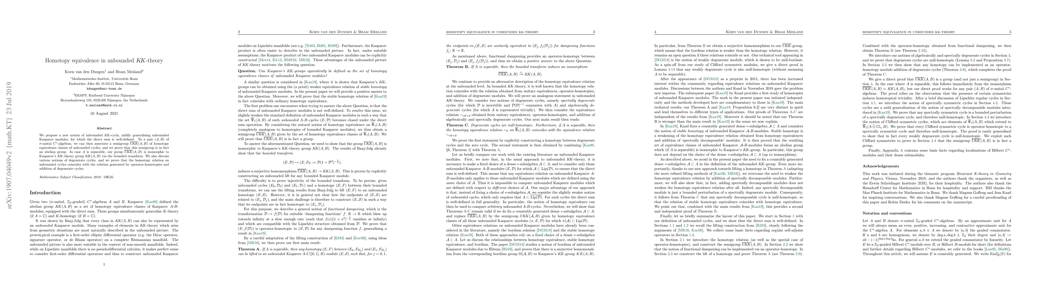This paper introduces a new notion of unbounded $K\!K$-cycles that generalizes unbounded Kasparov modules and forms an abelian group $\overline{U\!K\!K}(A,B)$, which is isomorphic to Kasparov's $K\!K$-theory group when $A$ is separable. The authors also explore degenerate cycles and show that the homotopy equivalence relation aligns with operator-homotopies and degenerate cycles.