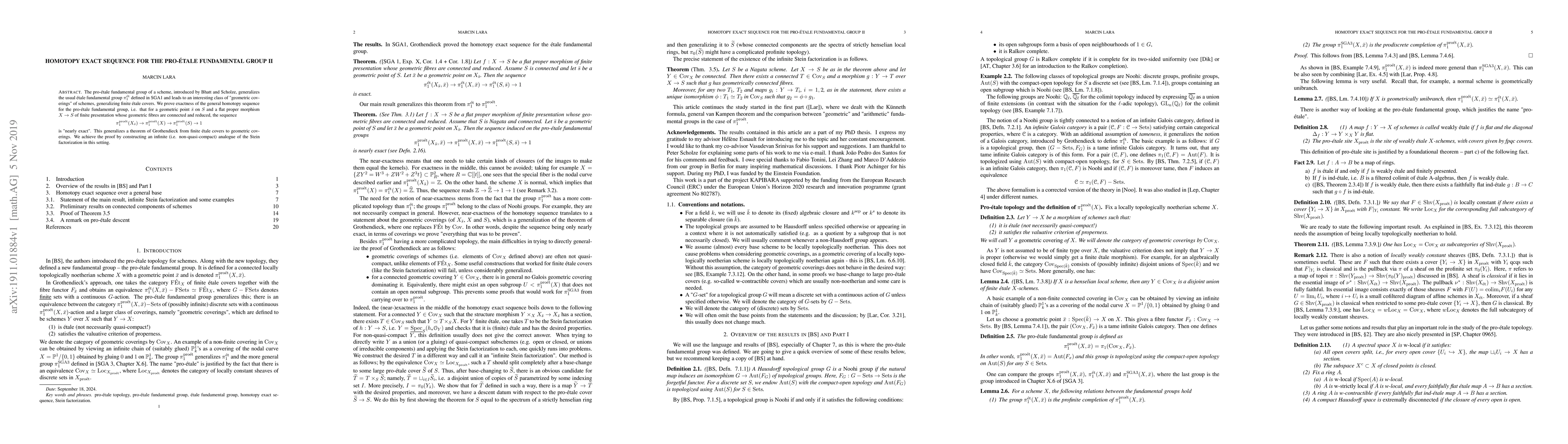 This paper proves the exactness of the homotopy sequence for the pro-étale fundamental group, generalizing Grothendieck's theorem from finite étale covers to geometric coverings. The authors construct an infinite analogue of the Stein factorization to establish this nearly exact sequence.