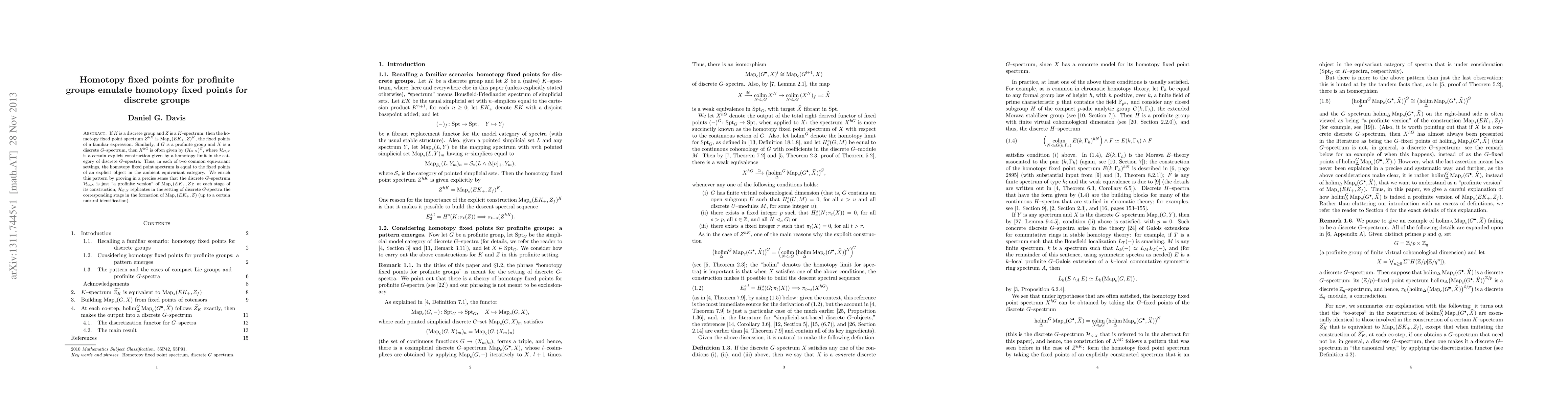 This paper shows that homotopy fixed points for profinite groups closely resemble those for discrete groups, establishing that the homotopy fixed point spectrum for a profinite group G and a discrete G-spectrum X is analogous to the fixed points of an explicit construction in the equivariant category, mirroring the pattern seen in discrete groups.
