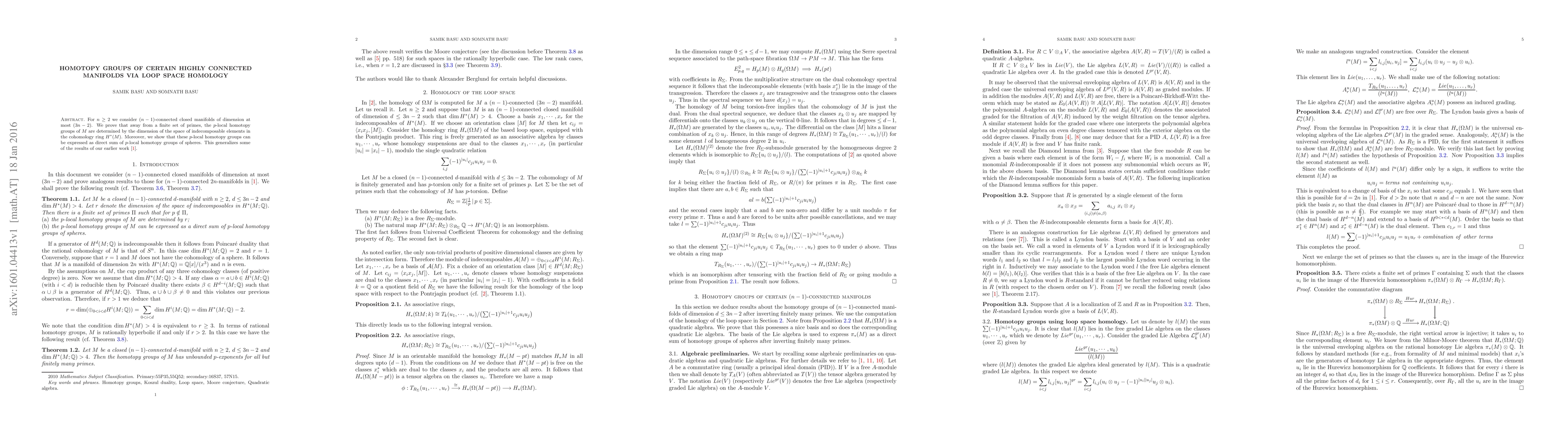 This paper proves that for $(n-1)$-connected closed manifolds of dimension up to $(3n-2)$, the $p$-local homotopy groups are determined by the dimension of the space of indecomposable elements in the cohomology ring, away from a finite set of primes. It also shows these $p$-local homotopy groups can be expressed as a direct sum of $p$-local homotopy groups of spheres, thus generalizing previous results.