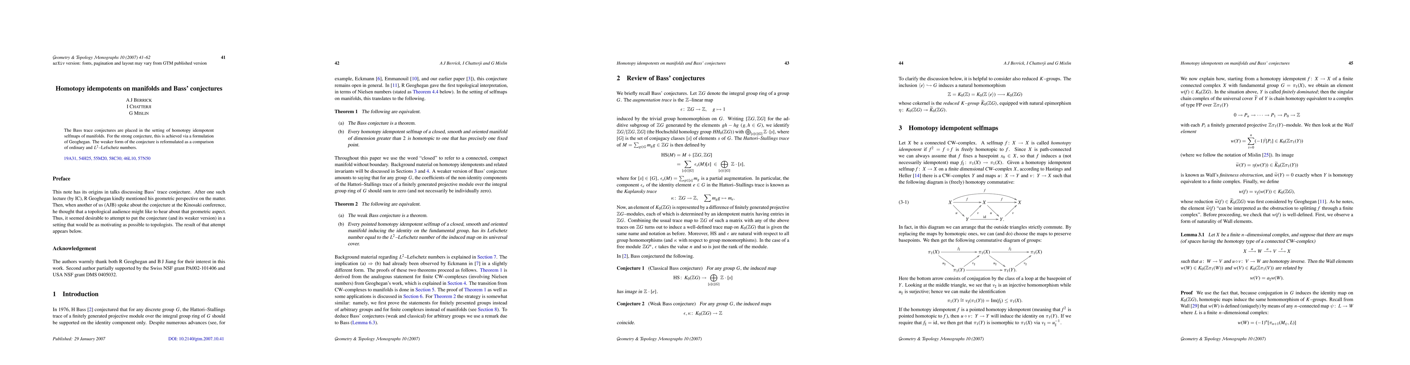 The Bass trace conjectures are placed in the setting of homotopy idempotent selfmaps of manifolds. For the strong conjecture, this is achieved via a formulation of Geoghegan. The weaker form of the conjecture is reformulated as a comparison of ordinary and L^2-Lefschetz numbers.