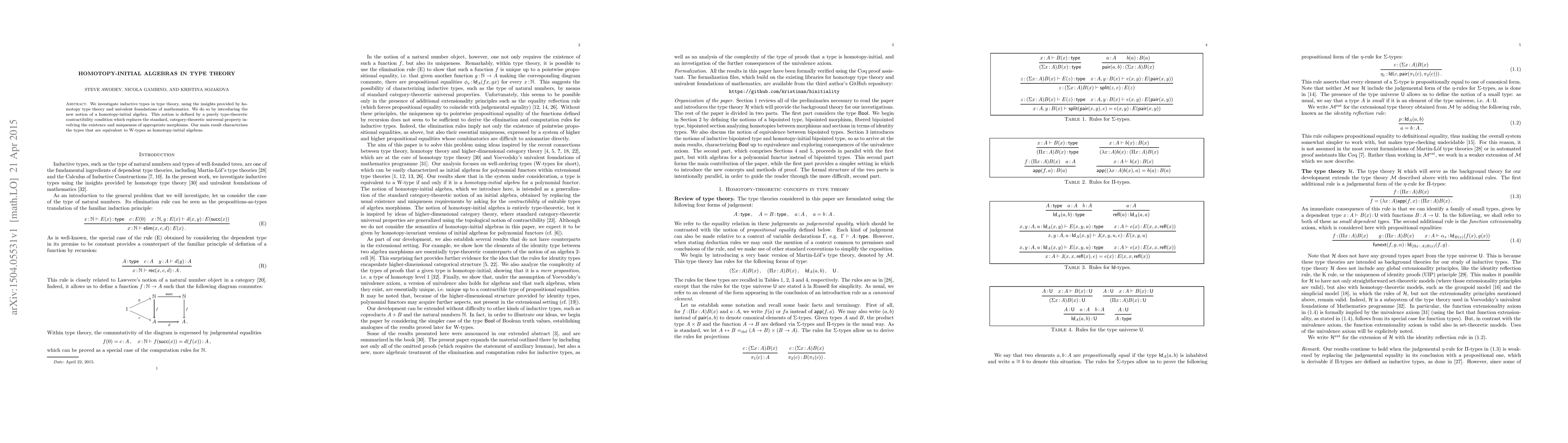 This paper explores inductive types in type theory through homotopy type theory, introducing the concept of homotopy-initial algebra defined by a type-theoretic contractibility condition. It characterizes types equivalent to W-types as homotopy-initial algebras.