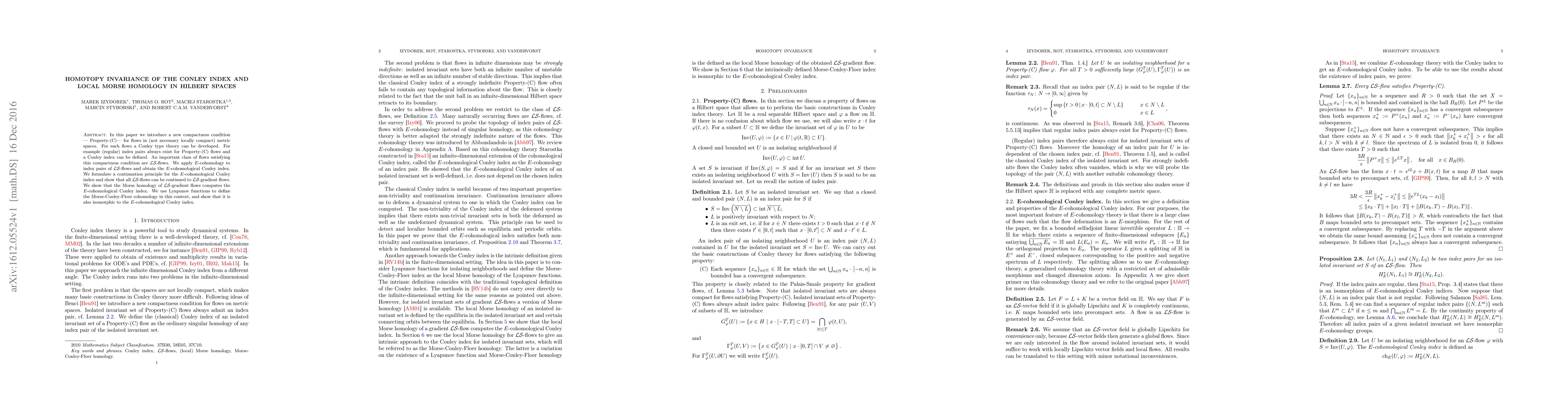 In this paper we introduce a new compactness condition - Property (C) - for flows in (not necessary locally compact) metric spaces. For such flows a Conley type theory can be developed. For example (regular) index pairs always exist for Property-(C) flows and a Conley index can be defined. An important class of flows satisfying this compactness condition are LS-flows. We apply E-cohomology to index pairs of LS-flows and obtain the E-cohomological Conley index. We formulate a continuation principle for the E-cohomological Conley index and show that all LS-flows can be continued to LS-gradient flows. We show that the Morse homology of LS-gradient flows computes the E-cohomological Conley index. We use Lyapunov functions to define the Morse-Conley-Floer cohomology in this context, and show that it is also isomorphic to the E-cohomological Conley index.