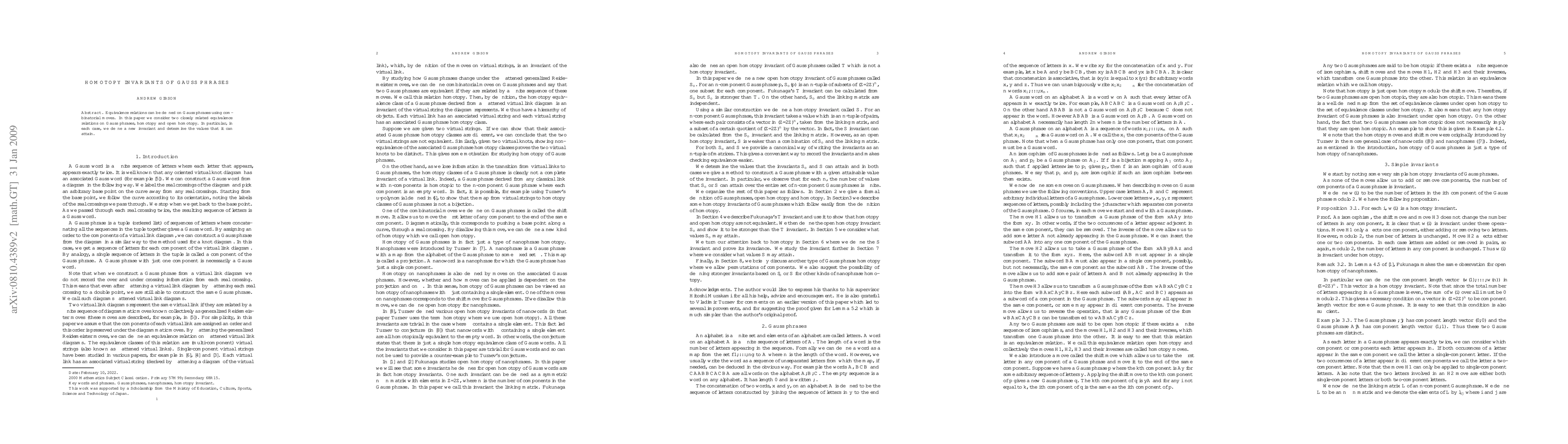 Equivalence relations can be defined on Gauss phrases using combinatorial moves. In this paper we consider two closely related equivalence relations on Gauss phrases, homotopy and open homotopy. In particular, in each case, we define a new invariant and determine the values that it can attain.