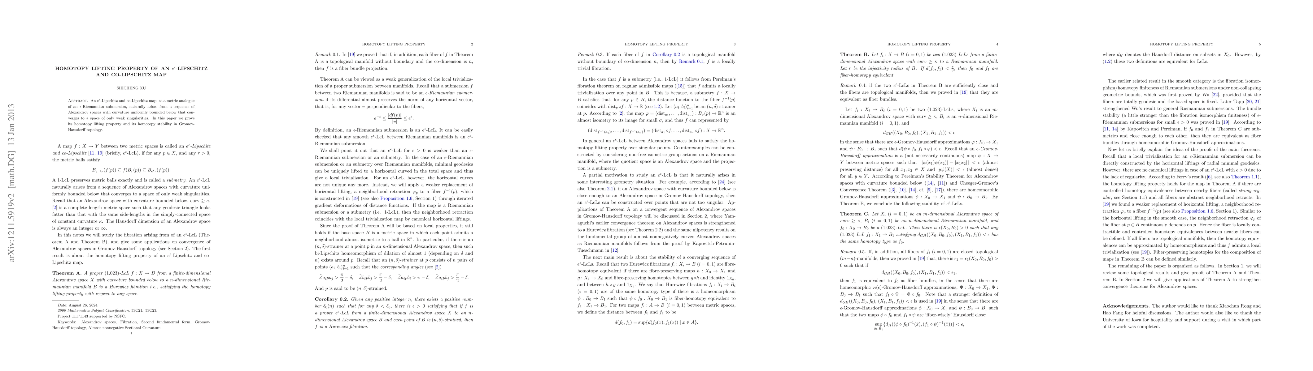 The paper proves the homotopy lifting property and homotopy stability in Gromov-Hausdorff topology for $e^\epsilon$-Lipschitz and co-Lipschitz maps, which are metric analogues of $\epsilon$-Riemannian submersions arising from sequences of Alexandrov spaces with bounded curvature converging to spaces with weak singularities.