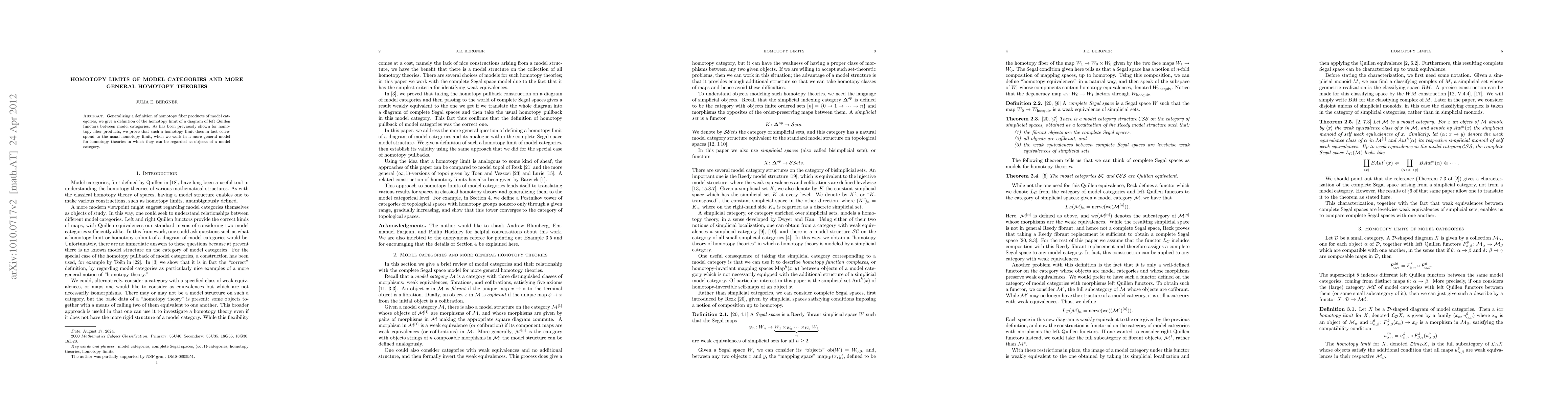 This paper generalizes the concept of homotopy fiber products to define homotopy limits for diagrams of left Quillen functors between model categories, showing that these align with traditional homotopy limits within a broader model for homotopy theories.