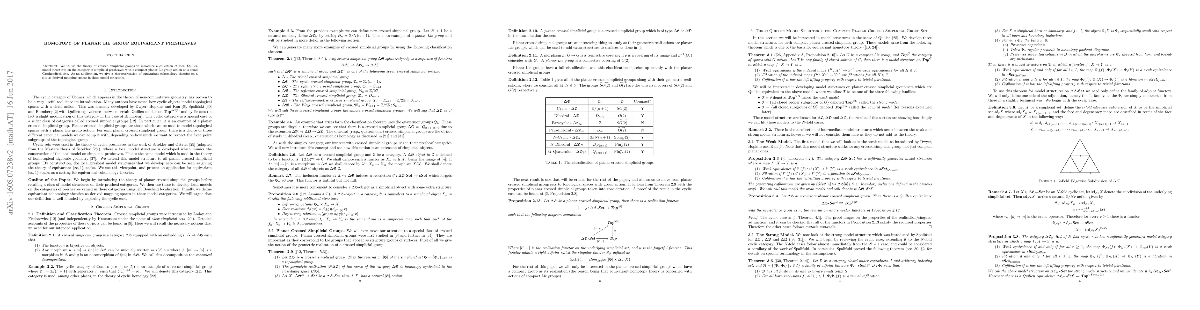 Researchers developed a framework for studying planar Lie group actions on simplicial presheaves using crossed simplicial groups, enabling the characterization of equivariant cohomology theories as derived mapping spaces.