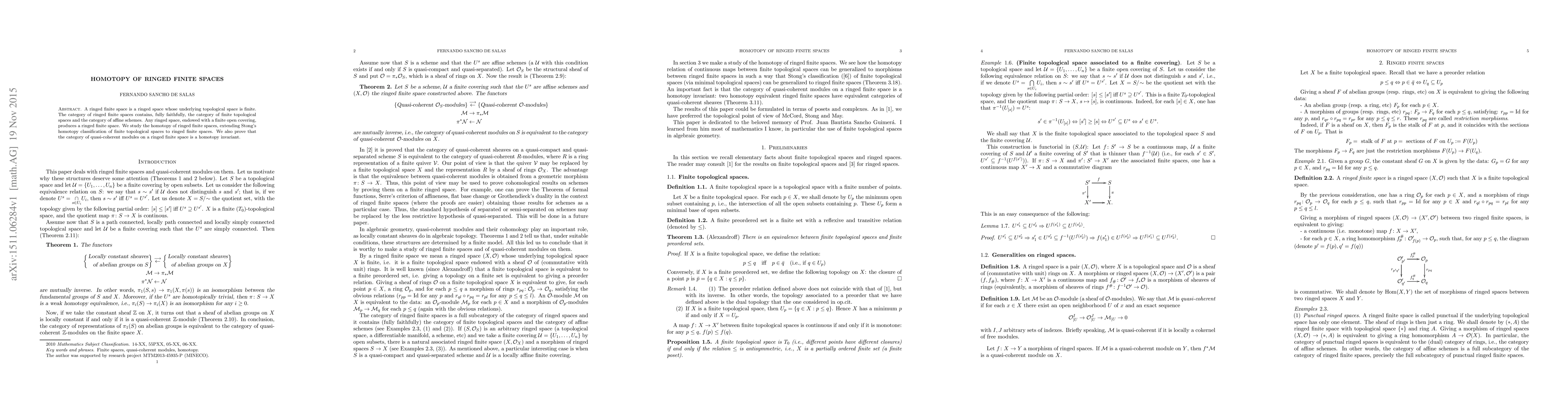 This paper explores the homotopy theory of ringed finite spaces, extending Stong's classification of finite topological spaces to this category, and demonstrates that quasi-coherent modules on such spaces maintain homotopy invariance.