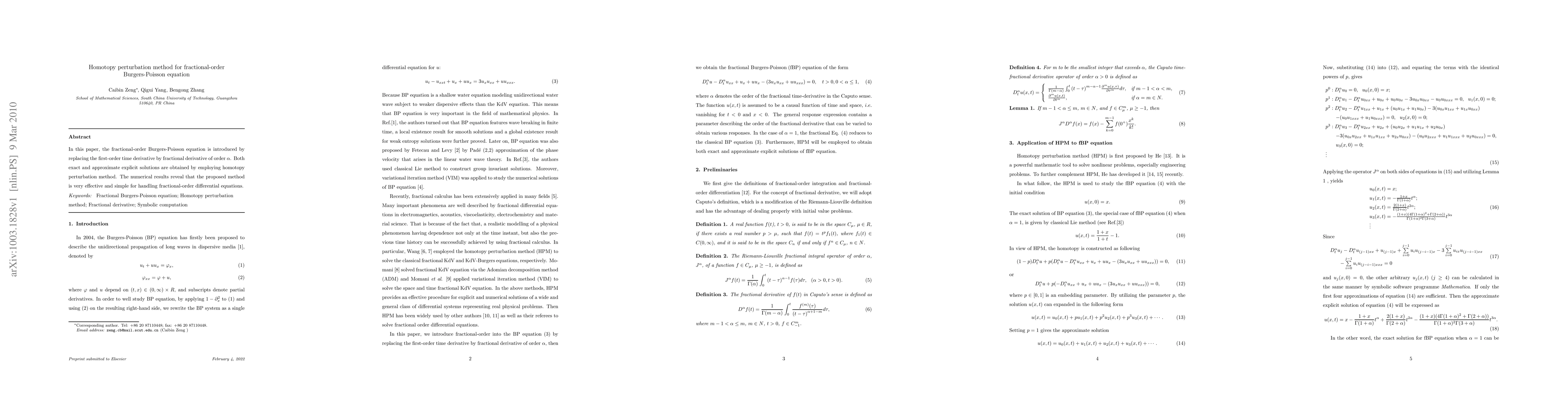 This paper introduces a new method for solving fractional-order Burgers-Poisson equations using homotopy perturbation, providing both exact and approximate solutions that demonstrate its effectiveness in handling these complex equations.