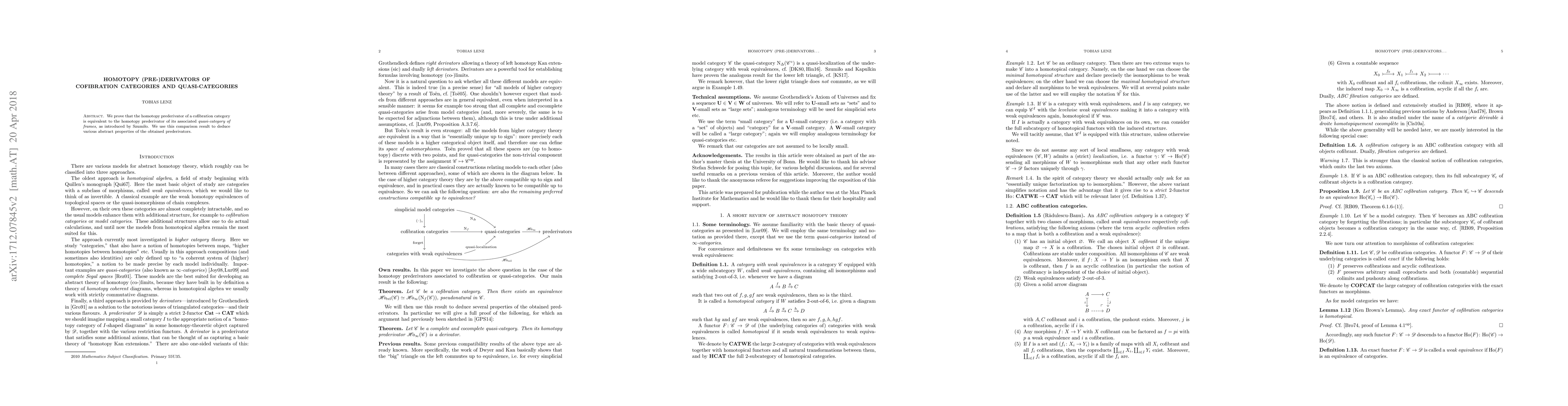 This paper shows that homotopy prederivators of cofibration categories are equivalent to those of their associated quasi-categories of frames, providing new insights into abstract properties of these objects.