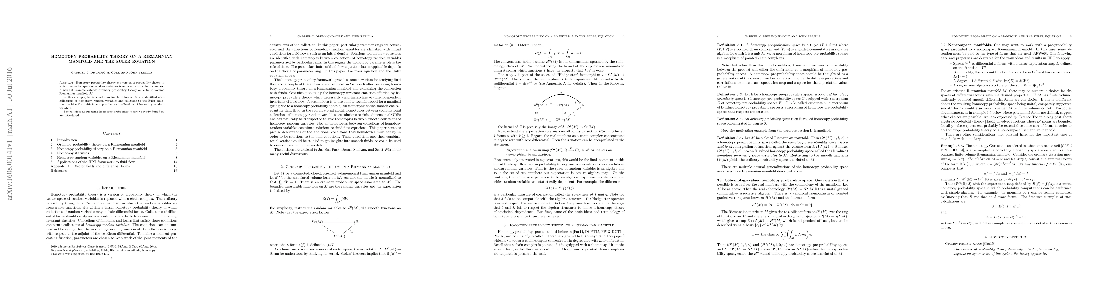 Homotopy probability theory replaces vector spaces of random variables with chain complexes, applying this to fluid flow on Riemannian manifolds where Euler equation solutions are seen as homotopies between collections of such variables.