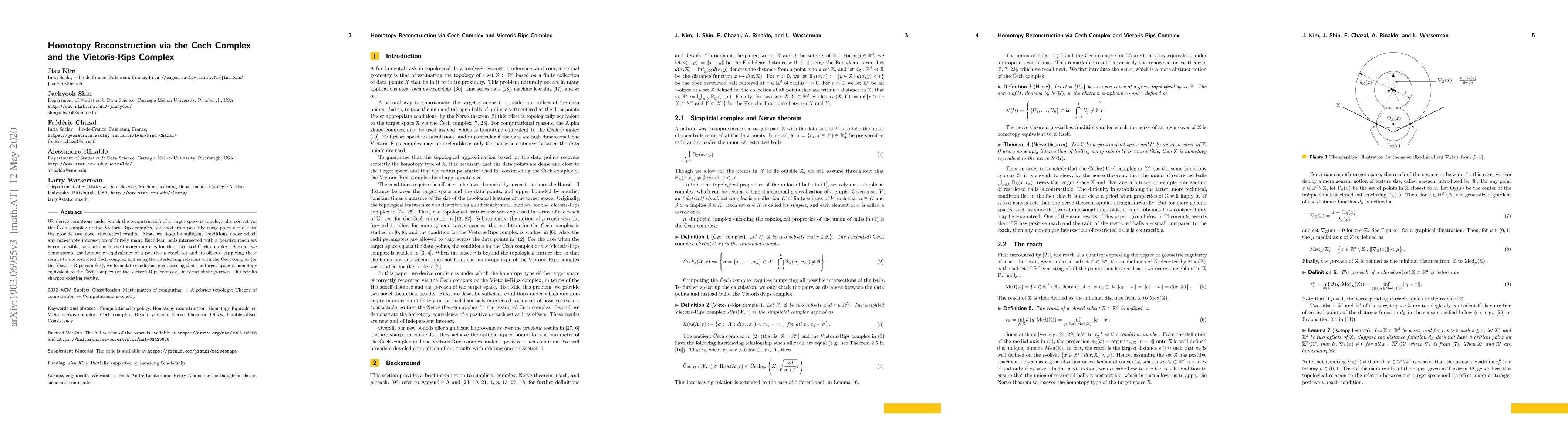 This paper establishes conditions for topologically correct reconstruction of a target space using the Cech or Vietoris-Rips complex from noisy point cloud data. It introduces sufficient conditions for contractibility and homotopy equivalence, thereby ensuring the reconstructed space matches the original target space's homotopy type.