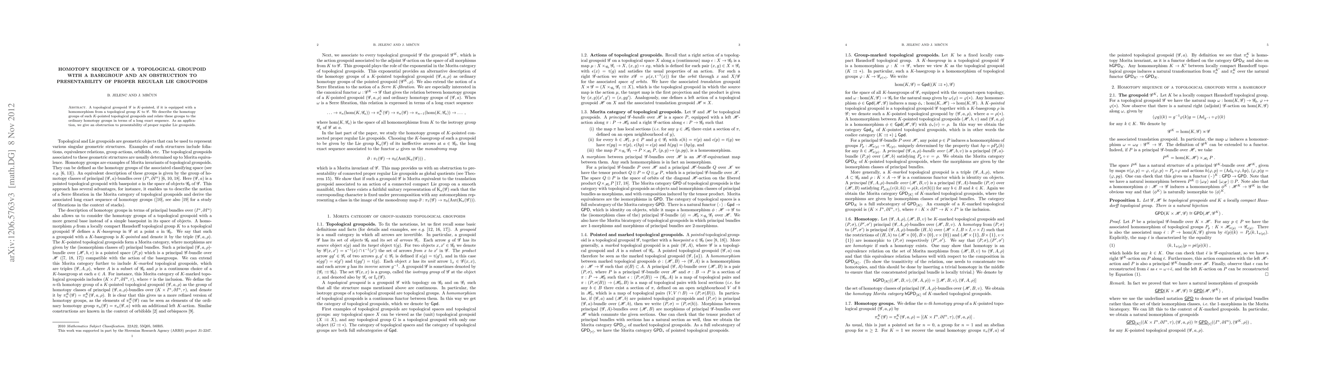 A topological groupoid G is K-pointed, if it is equipped with a homomorphism from a topological group K to G. We describe the homotopy groups of such K-pointed topological groupoids and relate these groups to the ordinary homotopy groups in terms of a long exact sequence. As an application, we give an obstruction to presentability of proper regular Lie groupoids.