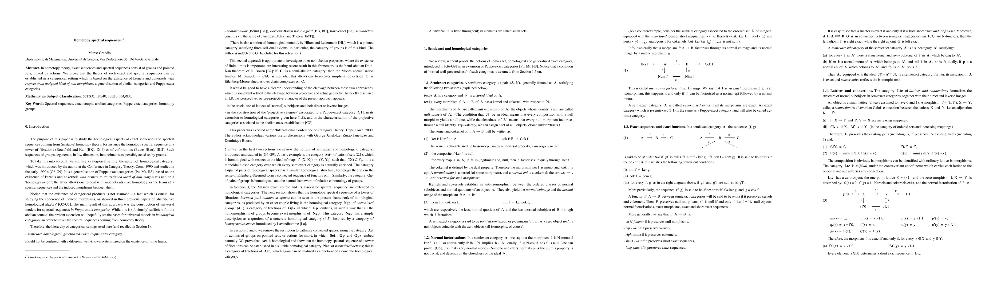 This paper establishes a categorical framework for homotopy theory's exact and spectral sequences using kernels and cokernels relative to an ideal of null morphisms, generalizing abelian and Puppe-exact categories. The theory provides a unified approach to handling these sequences in homotopy theory.