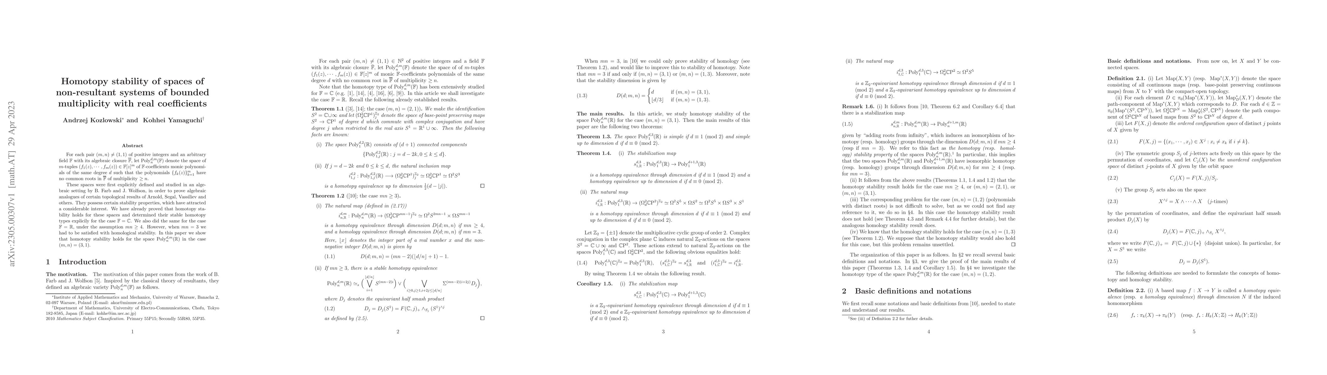 This paper proves homotopy stability for the spaces of $m$ tuples of real polynomials of common degree $d$ without common roots of multiplicity $n$, specifically for $(m,n)=(3,1)$. It extends earlier results by determining stable homotopy types for these spaces when $m n \geq 4$ and proving stability in homology for $m n = 3$.