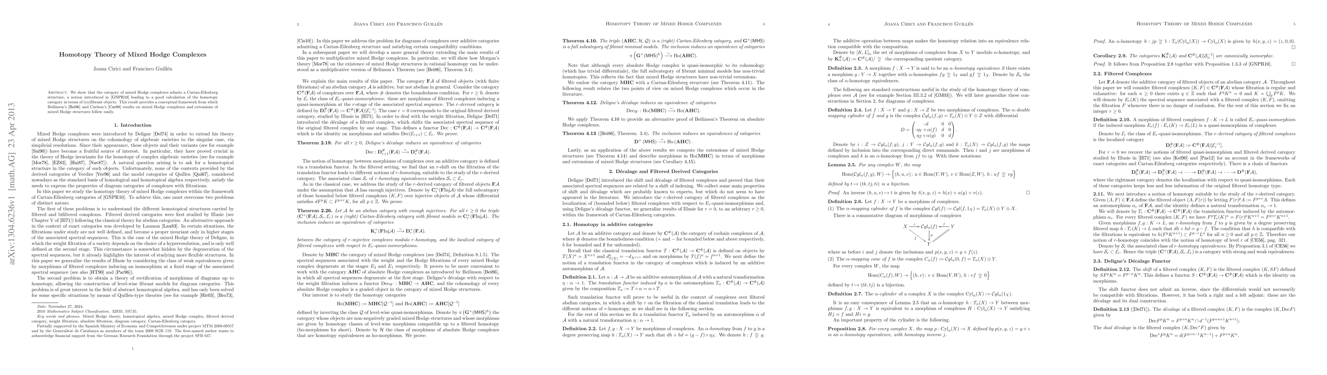 This paper demonstrates that mixed Hodge complexes possess a Cartan-Eilenberg structure, facilitating a clear calculation of their homotopy category through cofibrant objects. This framework simplifies the understanding and application of Beilinson's and Carlson's results on mixed Hodge complexes.
