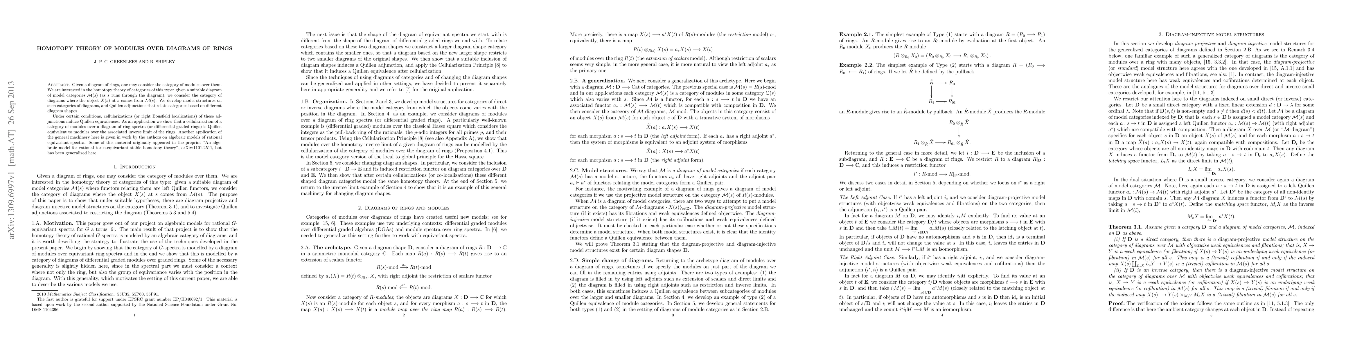 This paper develops model structures for categories of modules over diagrams of rings and explores their homotopy theory. It introduces Quillen adjunctions linking different diagram shapes and shows that certain cellularizations induce Quillen equivalences, particularly relating modules over a diagram of ring spectra to modules over their inverse limits.