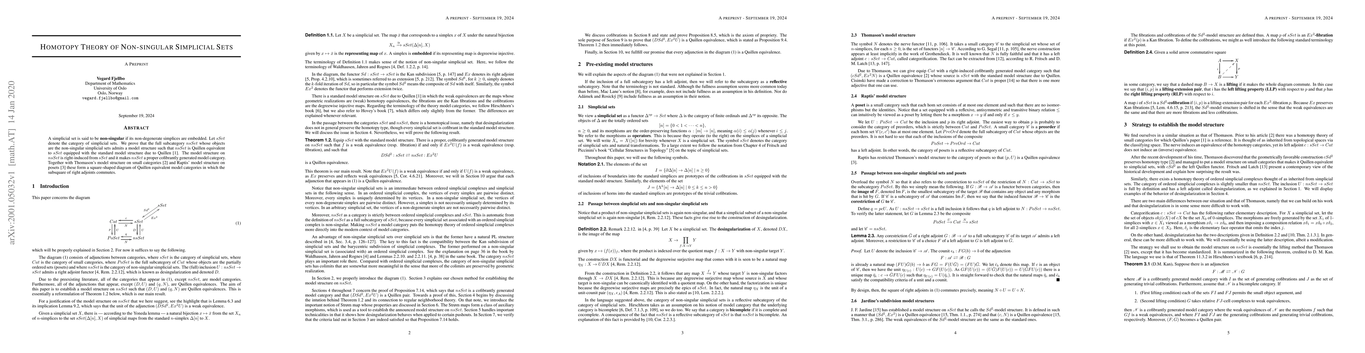 Researchers prove that non-singular simplicial sets form a model category equivalent to the category of simplicial sets, providing a new understanding of how these mathematical structures relate.