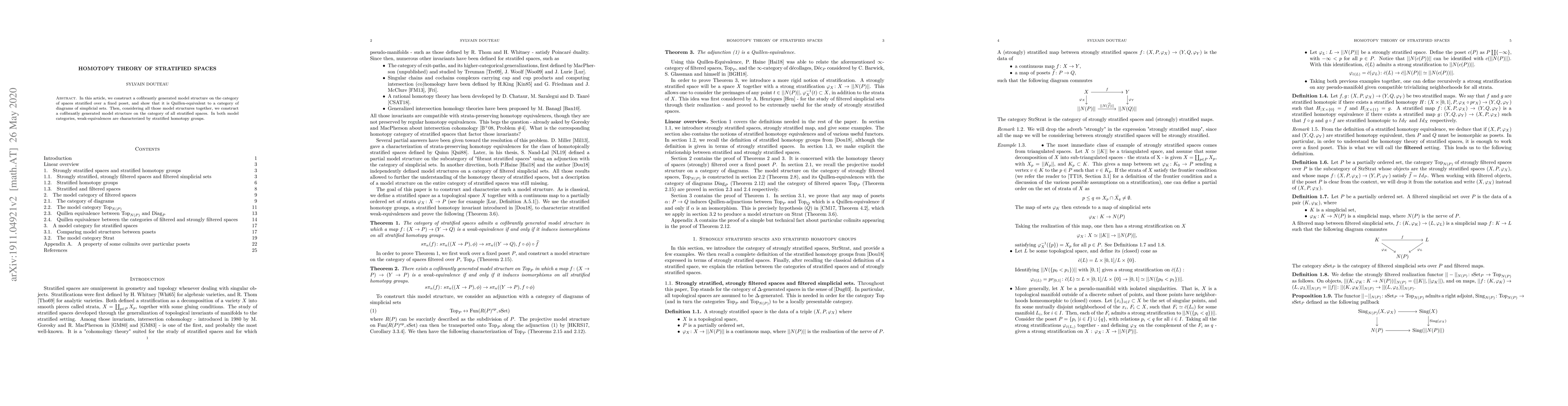 This paper establishes a cofibrantly generated model structure on stratified spaces, showing equivalence to a category of simplicial set diagrams, and extends this to all stratified spaces, with weak equivalences defined by stratified homotopy groups.