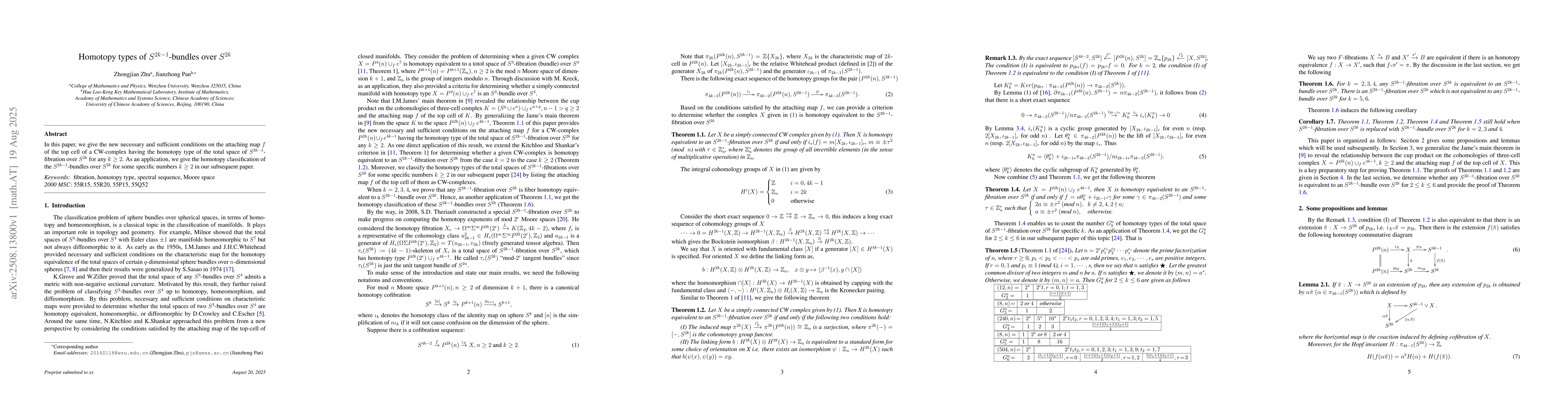 This paper provides necessary and sufficient conditions on the attaching map of a CW-complex's top cell to have the homotopy type of S^{2k-1}-fibrations over S^{2k}, for any k≥2. It also offers a homotopy classification of S^{2k-1}-bundles over S^{2k} for certain k values in a follow-up paper.