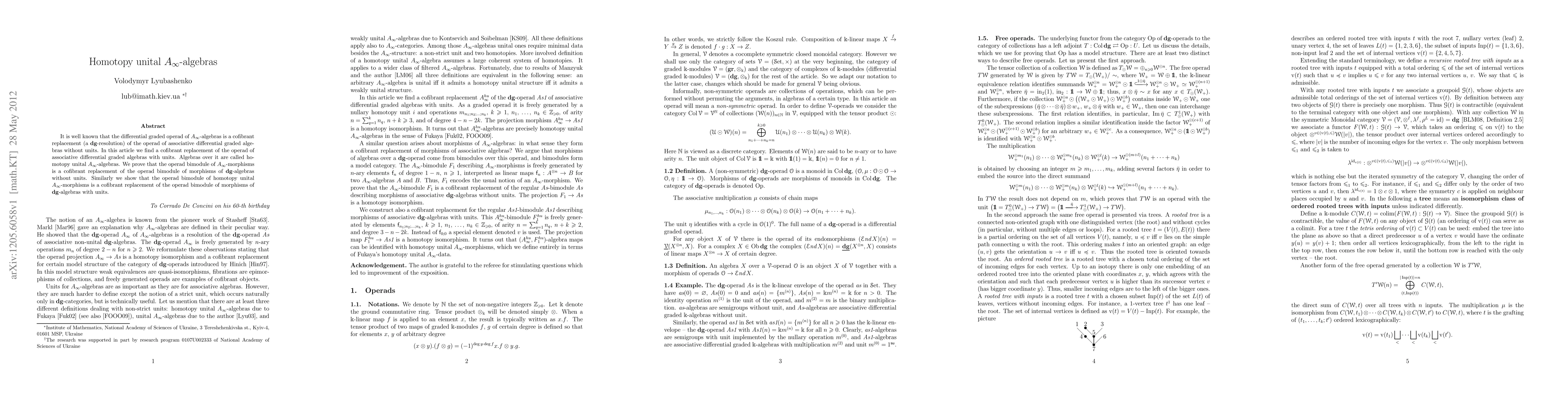This paper introduces homotopy unital A_infinity-algebras, which are algebras over a cofibrant replacement of the operad for associative differential graded algebras with units. It also demonstrates that the operad bimodule of homotopy unital A_infinity-morphisms serves as a cofibrant replacement for morphisms of dg-algebras with units.