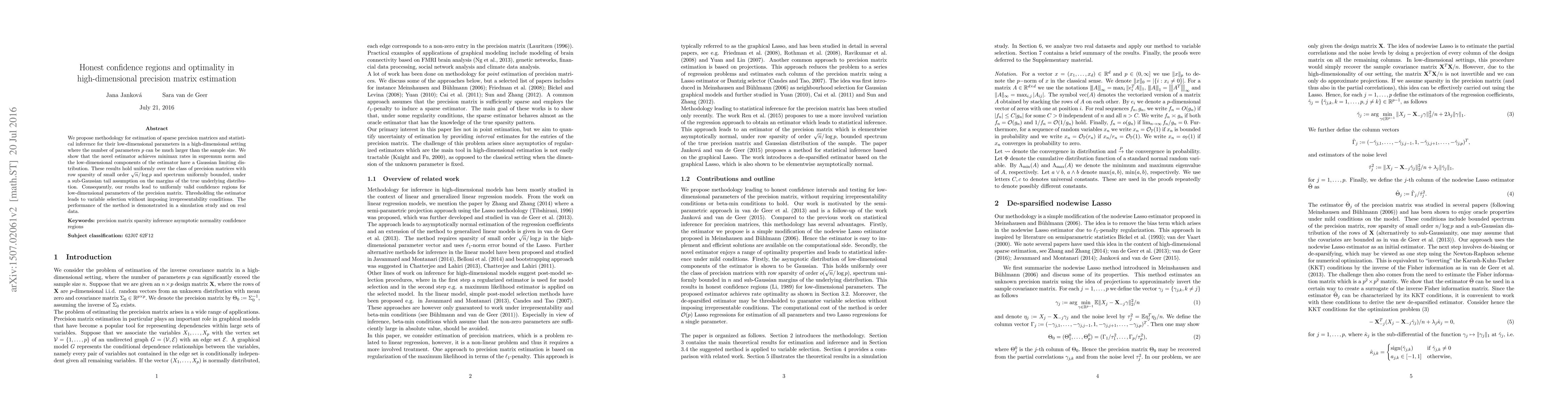 A new method for estimating sparse precision matrices in high-dimensional settings achieves optimal performance and provides uniformly valid confidence regions for low-dimensional parameters, enabling variable selection without imposing assumptions.