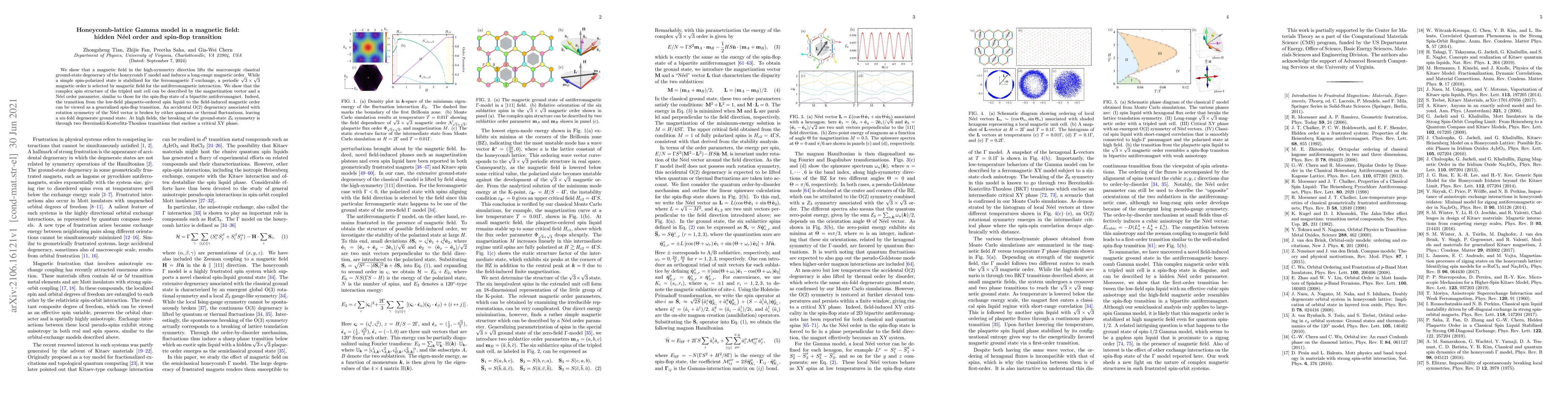 This paper investigates the honeycomb $\Gamma$ model under a magnetic field, revealing a transition from a spin-liquid state to a field-induced magnetic order, akin to a spin-flop transition. The study highlights the emergence of a $\sqrt{3}\times\sqrt{3}$ magnetic order and a six-fold degenerate ground state due to broken $Z_6$ symmetry.
