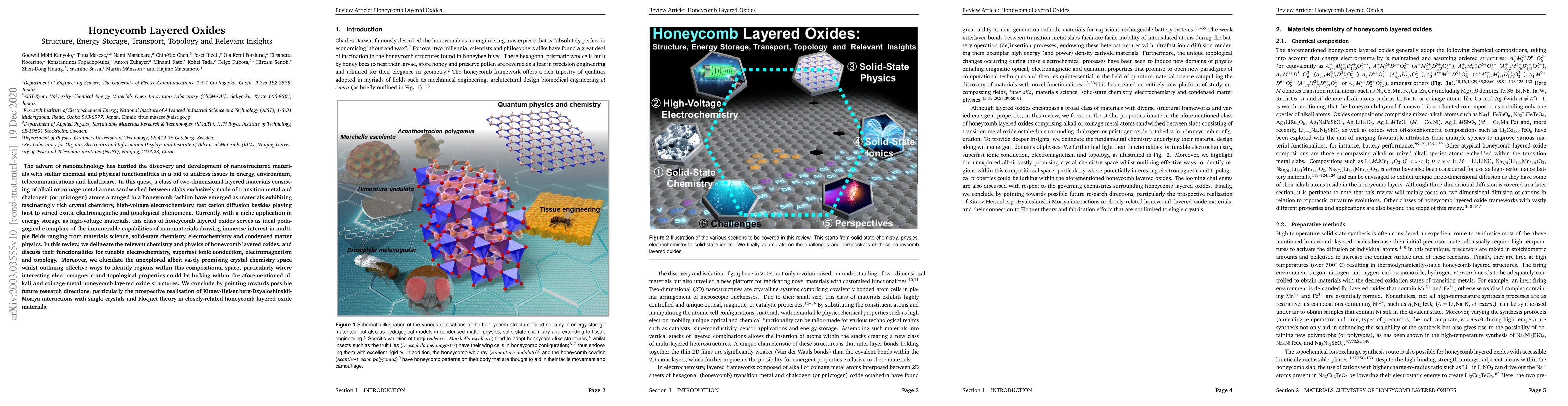 This paper reviews the chemistry and physics of honeycomb layered oxides, highlighting their high-voltage electrochemistry, fast cation diffusion, and potential for exotic electromagnetic and topological phenomena. It explores their applications in energy storage and suggests future research directions, including the realization of Kitaev-Heisenberg-Dzyaloshinskii-Moriya interactions and the use of Floquet theory.