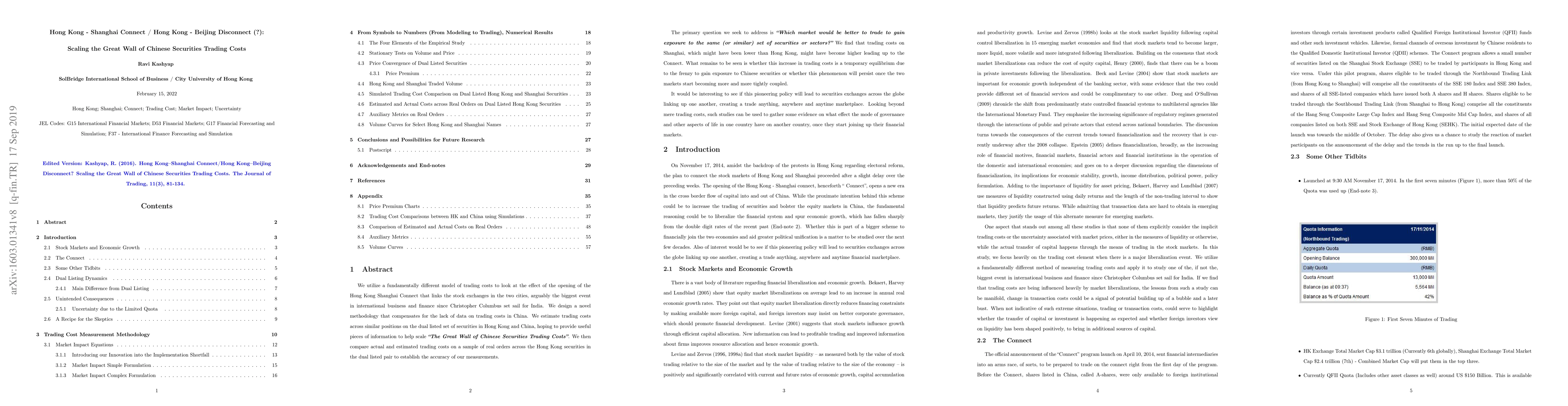This study examines trading costs before and after the implementation of the Hong Kong-Shanghai Connect, finding that while trading costs in Shanghai may have historically been lower, they increased post-Connect. The research aims to determine which market offers better exposure to similar securities, suggesting that current higher trading costs in Shanghai might either stabilize or persist as the two markets integrate further.