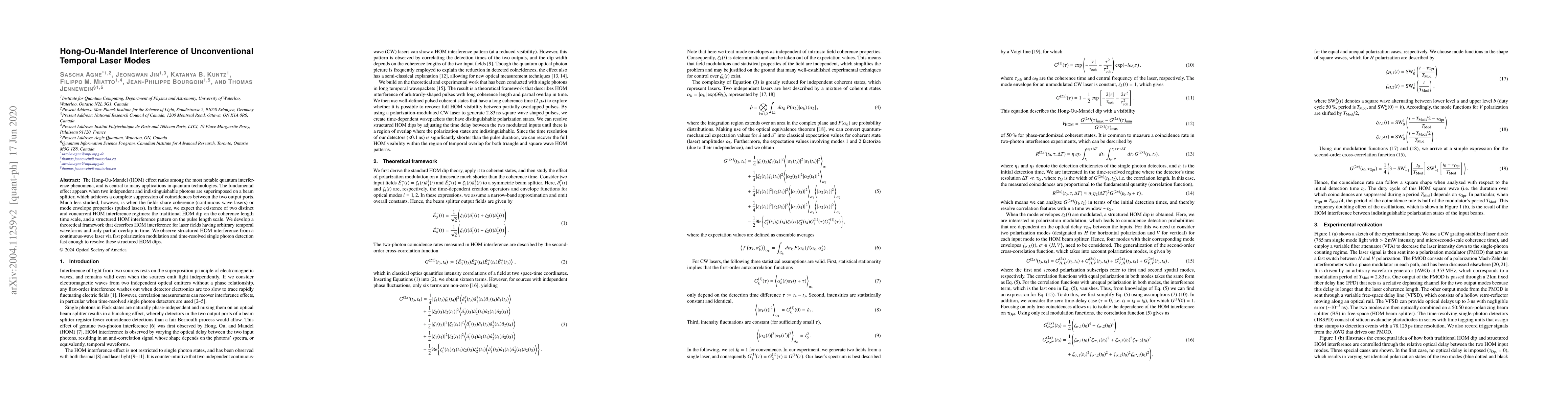 This work contributes to the understanding of HOM interference in laser fields with coherence or mode envelope properties, which has implications for quantum technologies and applications.