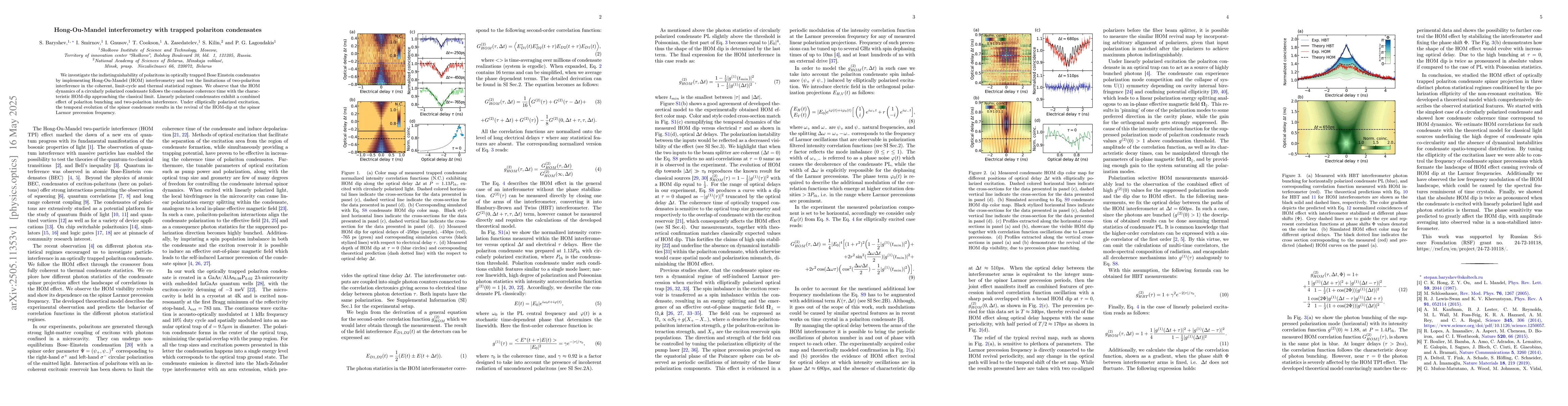 The paper presents an in-depth analysis of HOM interferometry for polariton condensates, revealing distinct behaviors across different statistical regimes.