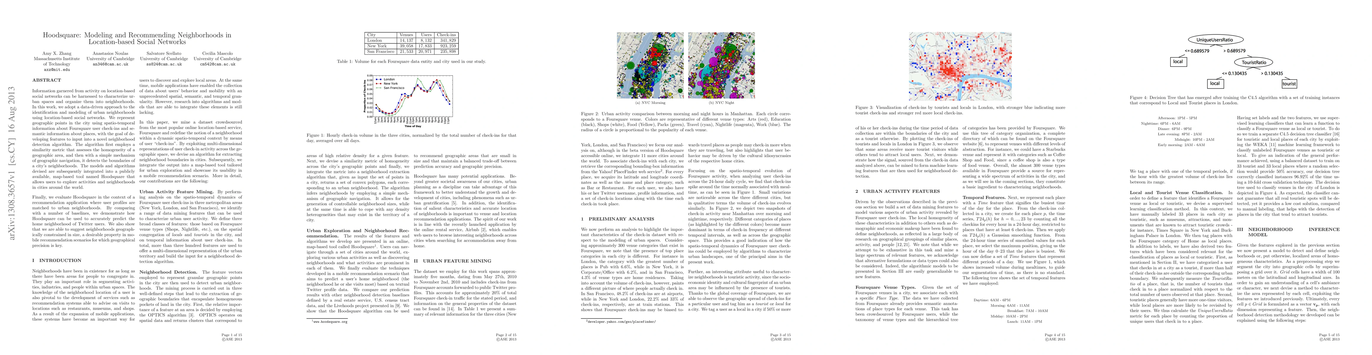 This paper presents Hoodsquare, a data-driven approach to identify and model urban neighborhoods using location-based social networks, specifically Foursquare check-ins. The proposed algorithm detects neighborhood boundaries and integrates into a map-based tool for exploration, demonstrating effectiveness in recommending neighborhoods to Twitter users.