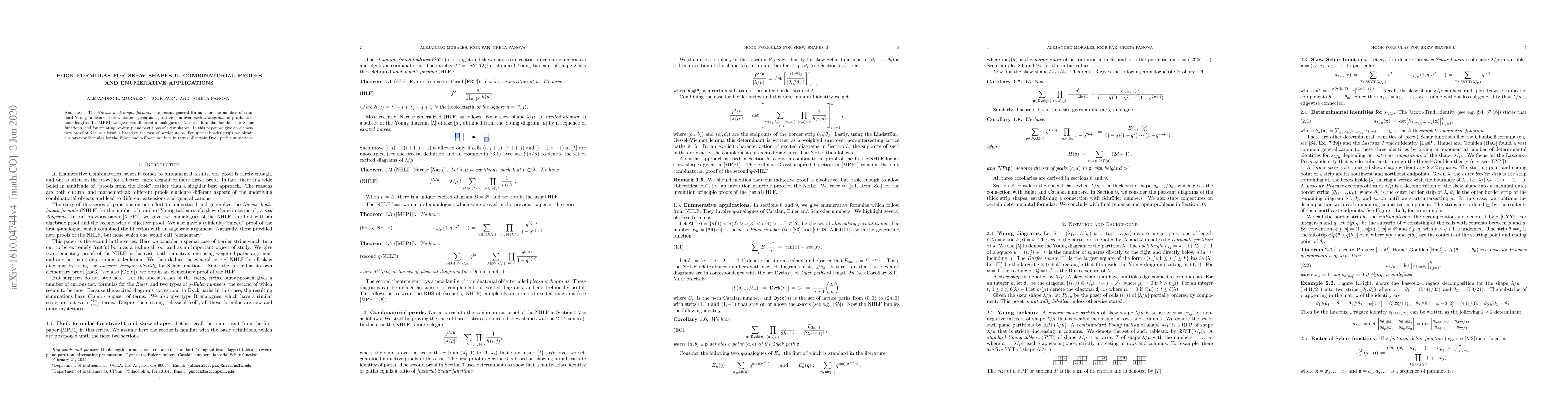 This paper provides an elementary combinatorial proof of Naruse's hook-length formula for counting standard Young tableaux of skew shapes, extending previous results with $q$-analogues and deriving new formulas for Euler and $q$-Euler numbers through Dyck path summations.