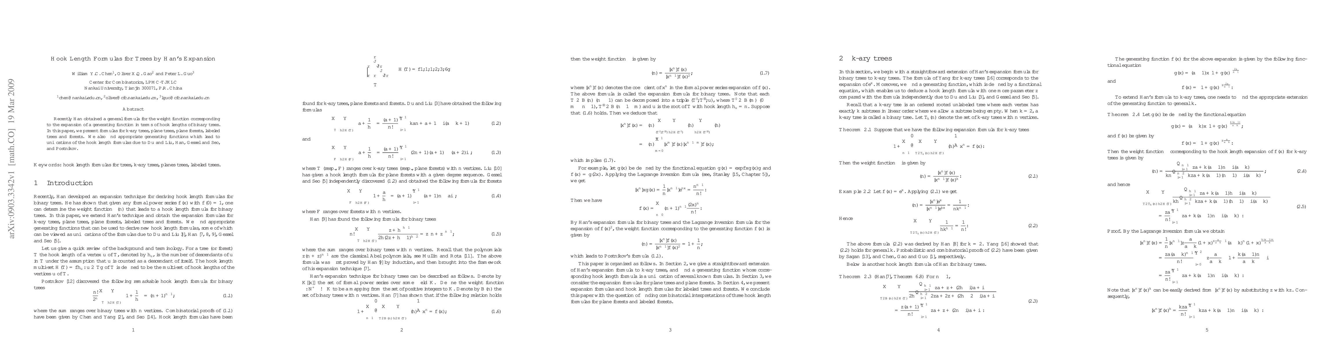 Recently Han obtained a general formula for the weight function corresponding to the expansion of a generating function in terms of hook lengths of binary trees. In this paper, we present formulas for k-ary trees, plane trees, plane forests, labeled trees and forests. We also find appropriate generating functions which lead to unifications of the hook length formulas due to Du and Liu, Han, Gessel and Seo, and Postnikov.