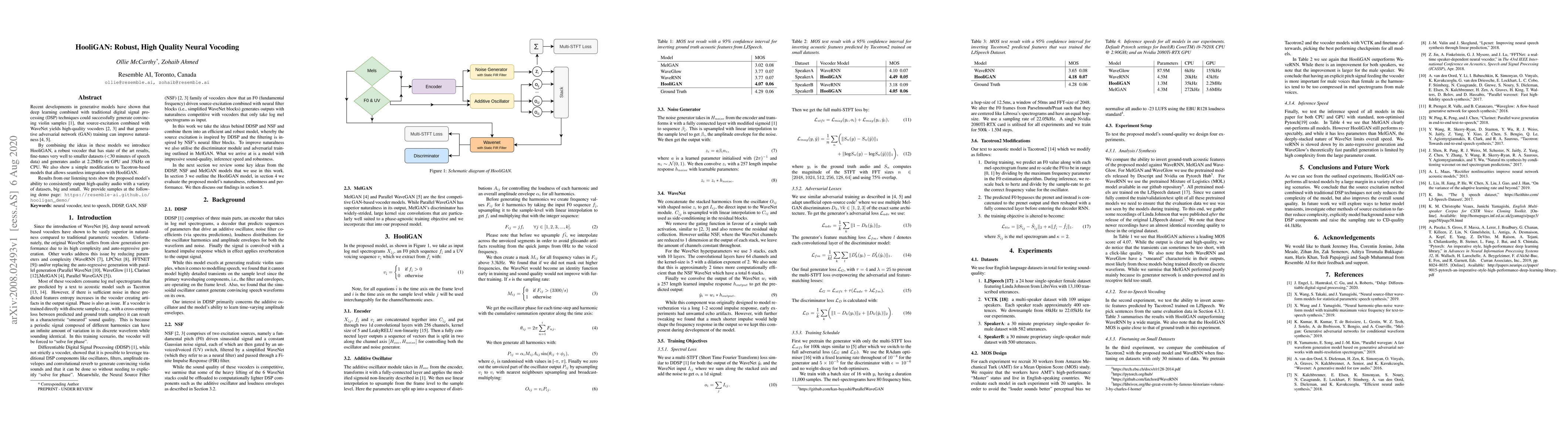 A new vocoder called HooliGAN outperforms existing models with high-quality audio, fine-tuning well on small datasets and generating fast speeds.