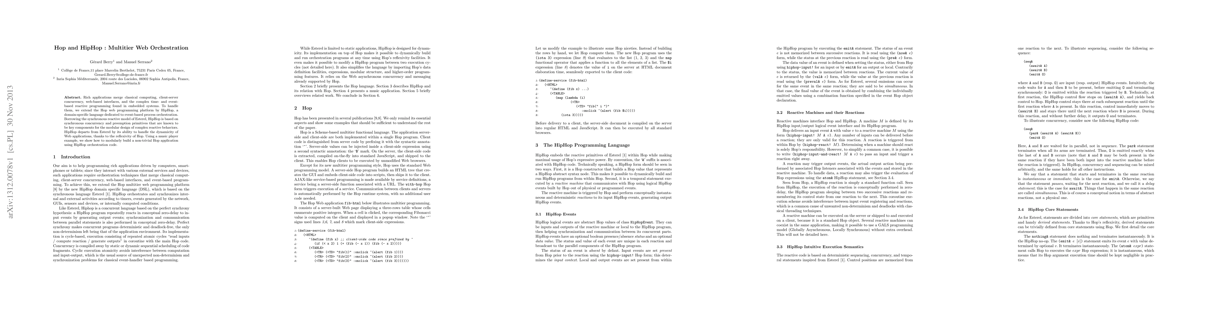 This research is significant as it introduces HipHop, a domain-specific language for orchestrating services and user interactions within Hop on both server and client sides, offering a well-understood synchronous programming style for embedded systems, replacing traditional asynchronous thread/event-handler spaghetti.