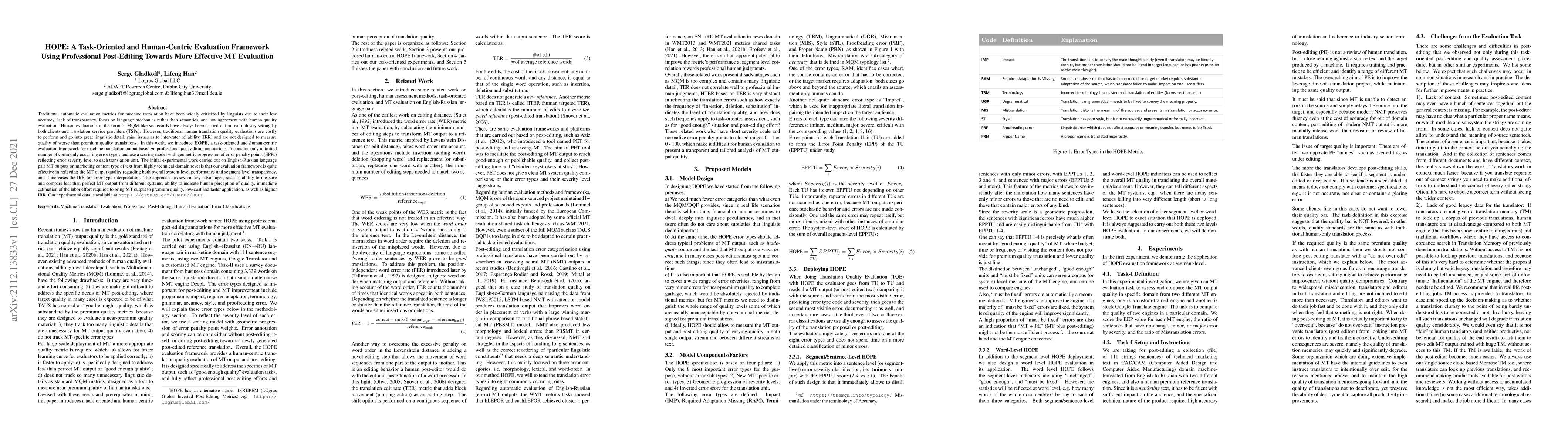 A new evaluation framework called HOPE is proposed to improve machine translation accuracy, offering a task-oriented and human-centric approach that reflects error severity levels and increases inter-rater reliability.