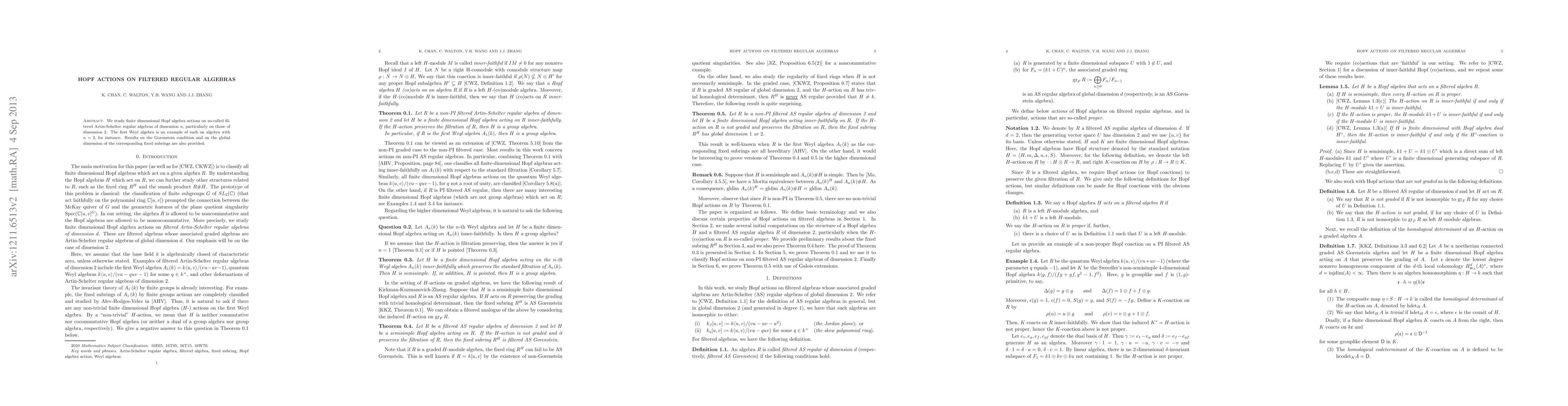 This paper investigates finite-dimensional Hopf algebra actions on filtered Artin-Schelter regular algebras, focusing on dimension 2 cases like the first Weyl algebra, and provides results on the Gorenstein condition and global dimension of the fixed subrings.