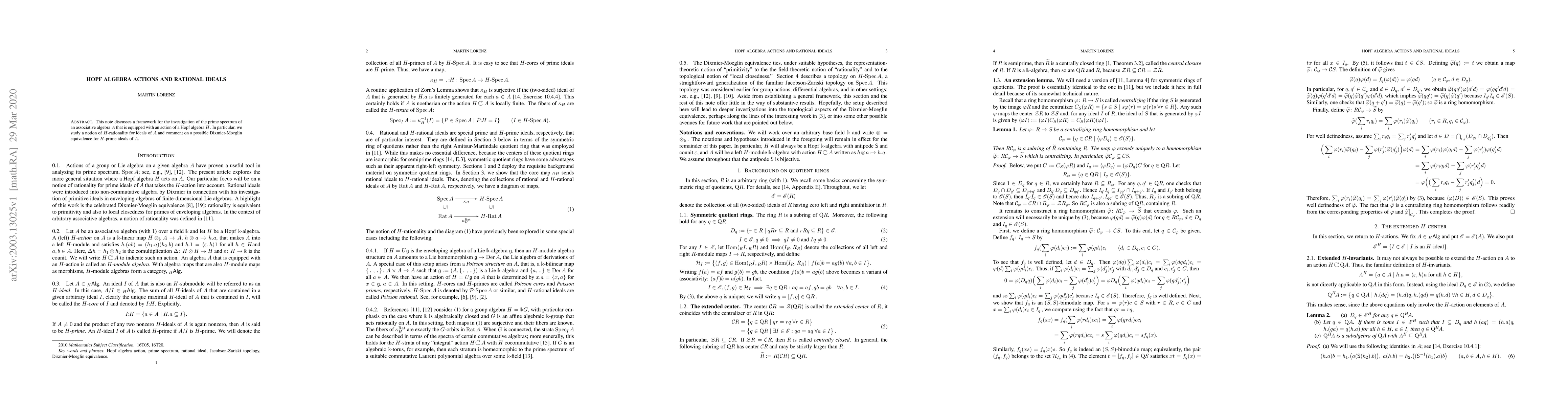 This paper explores the prime spectrum of an associative algebra with a Hopf algebra action, defining H-rationality for ideals and discussing the potential Dixmier-Moeglin equivalence for H-prime ideals.